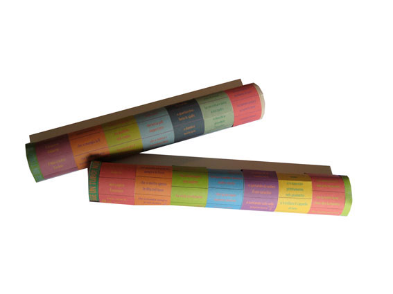 “…Il tubo polisemantico di Antonietta Casini, si rifà all’ars combinatoria, non riferita, però, a strutture permutabili, ma a delle frasi che, scritte su fogli mobili, possono formare a volontà delle proposizioni, degli aforismi, continuamente differenti. Un giocattolo che ricorda certe esercitazioni di Queneau. Per un bambino giocare significa non solamente dilettarsi, ma, come succede per gli animali, allenarsi ai compiti della vita da adulto.