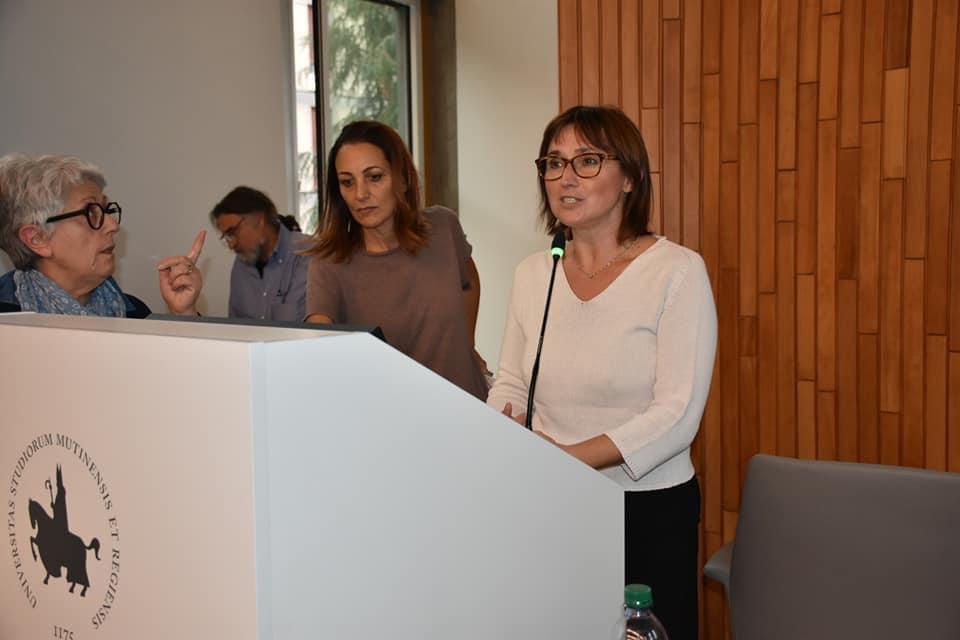Qui era il giorno in cui parlavo di poesia e parole preziose all’Università di Modena e Reggio, la Laura cercava di fare partire un video, l’altra Laura controllava cosa appariva nella proiezione e un tecnico faceva cose.